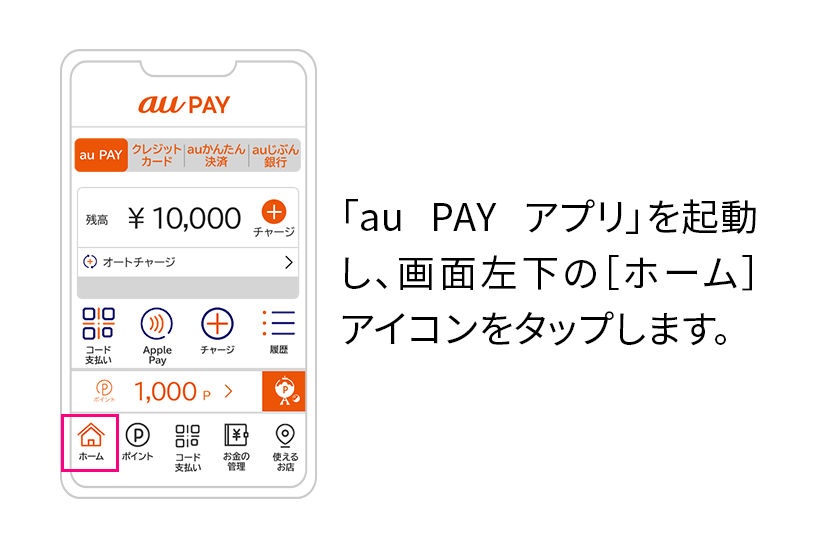 au PAY ギフトカードに記載してあるコードを入力し、チャージすることができます。